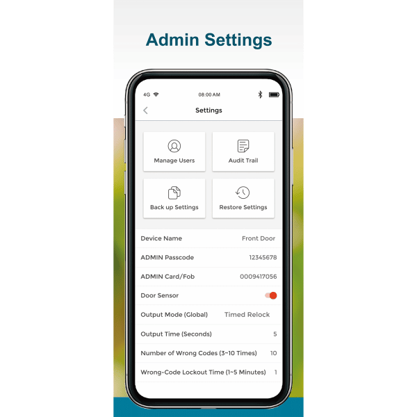 Rethinking Access Control – Streamlined, fully app-based setup using integrated Bluetooth® wireless technology. No codes to remember, intuitive app design for easy, visual programming. Provides convenience and security to the user and administrator. All data is secured on the device without the risks inherent with an internet connection.