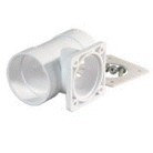 90-degree Flanged Wall "T" Fitting is a white 2-inch PVC coupling specifically designed to have low internal surface friction for air handling use in central vacuum system applications.