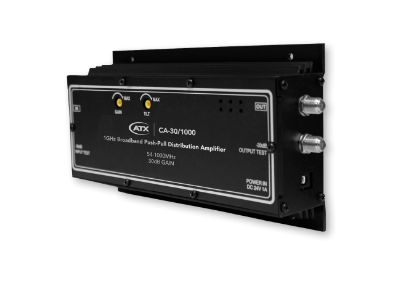 The Pico Digital CA-30/1000 Amplifier is a high quality push-pull, wall mounted distribution amplifier that produces signals with extremely low noise and harmonic distortion. The amplifier is capable of broadband 158-channel operation over the 54 MHz to 1000 MHz range. This amplifier makes an excellent distribution system amplifier for heavily loaded MDU and broadband CATV and SMATV systems. Because of its extremely low noise figure and low distortion, the CA-30/1000 is ideally suited for use in larger networks where amplifier cascading is required. In expanding bi-directional broadband systems, the CA-30/1000 can be used in conjunction with Tru-Spec Sub CATV diplexers to split forward and reverse paths. Alternately, ATX’s PIDA series of bi-directional amplifiers may be used.